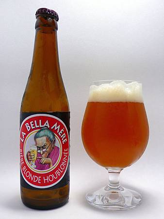 至於這次要介紹的La Bella Mère(Mother in Law),則是一款啤酒花性格明顯的比利時金啤酒。首度發行於2006年。據稱使用的啤酒花達四種之多。不過開瓶時啤酒花香氣並不特別突出,在柑橘之外,帶有丁香及生麵感,以及少許番茄、梅粉氣息。升溫後甚至透出少許皮革感。入杯後香氣較為開展,但啤酒花氣息仍止於柑橘、葡萄柚,餘下則是丁香、芫荽、梅粉與生麵感。
